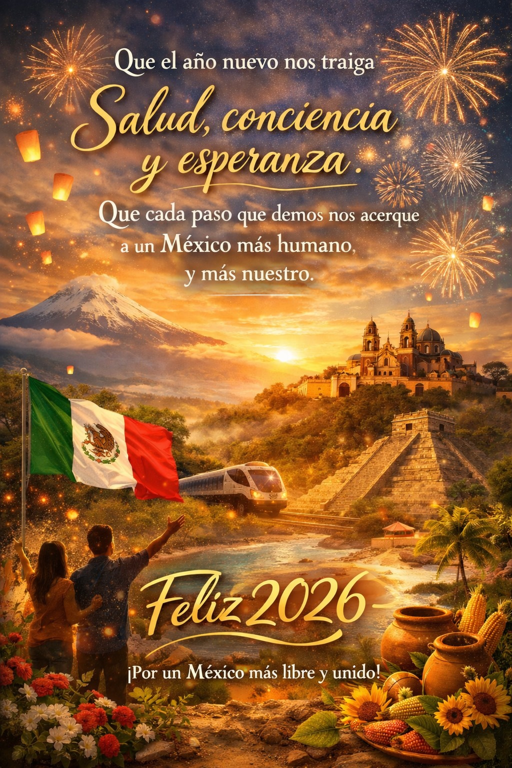 Que este año nuevo nos encuentre con la mirada despierta y el corazón firme. Que tengamos claridad para pensar, valentía para actuar y ternura para no olvidar de dónde venimos. Que el miedo no nos robe la palabra ni la dignidad, y que el amor por nuestro país se traduzca en obras justas, pensamiento libre y esperanza activa. Les deseo un año de salud, conciencia y propósito, donde cada paso, por pequeño que parezca, sume a un México más humano, más libre y más nuestro