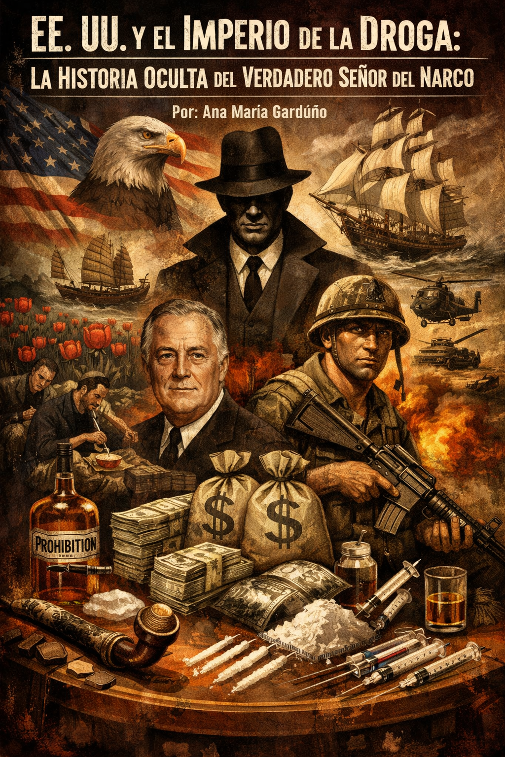 El origen de la mentira se consolidó, cuando el imperio norteamericano aprendió a dominar con droga. La historia del narcotráfico moderno no comienza en Colombia, ni en México, ni en Asia. Comienza con el Imperio Británico, cuando descubrió que la droga podía ser un arma estratégica más poderosa que cualquier cañón. En los siglos XVIII y XIX, Gran Bretaña inundó China de opio para doblegarla, destruir su estabilidad interna y abrir sus puertos por la fuerza. Millones de chinos fueron convertidos en dependientes, debilitando la estructura social del imperio del Medio Oriente. Cuando China intentó detener la invasión silenciosa, Londres respondió con barcos de guerra. Las Guerras del Opio fueron la primera gran operación global de narcotráfico patrocinado por un Estado.